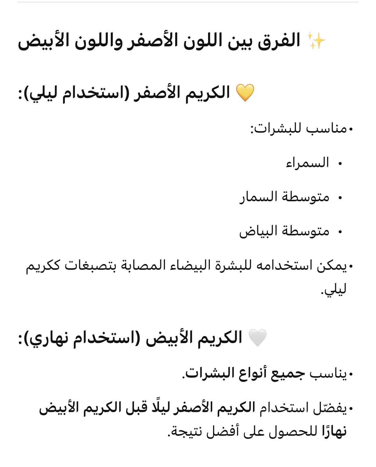 * ⁠عدم خلط لكريمات واستخدام كل واحد لي حاله
