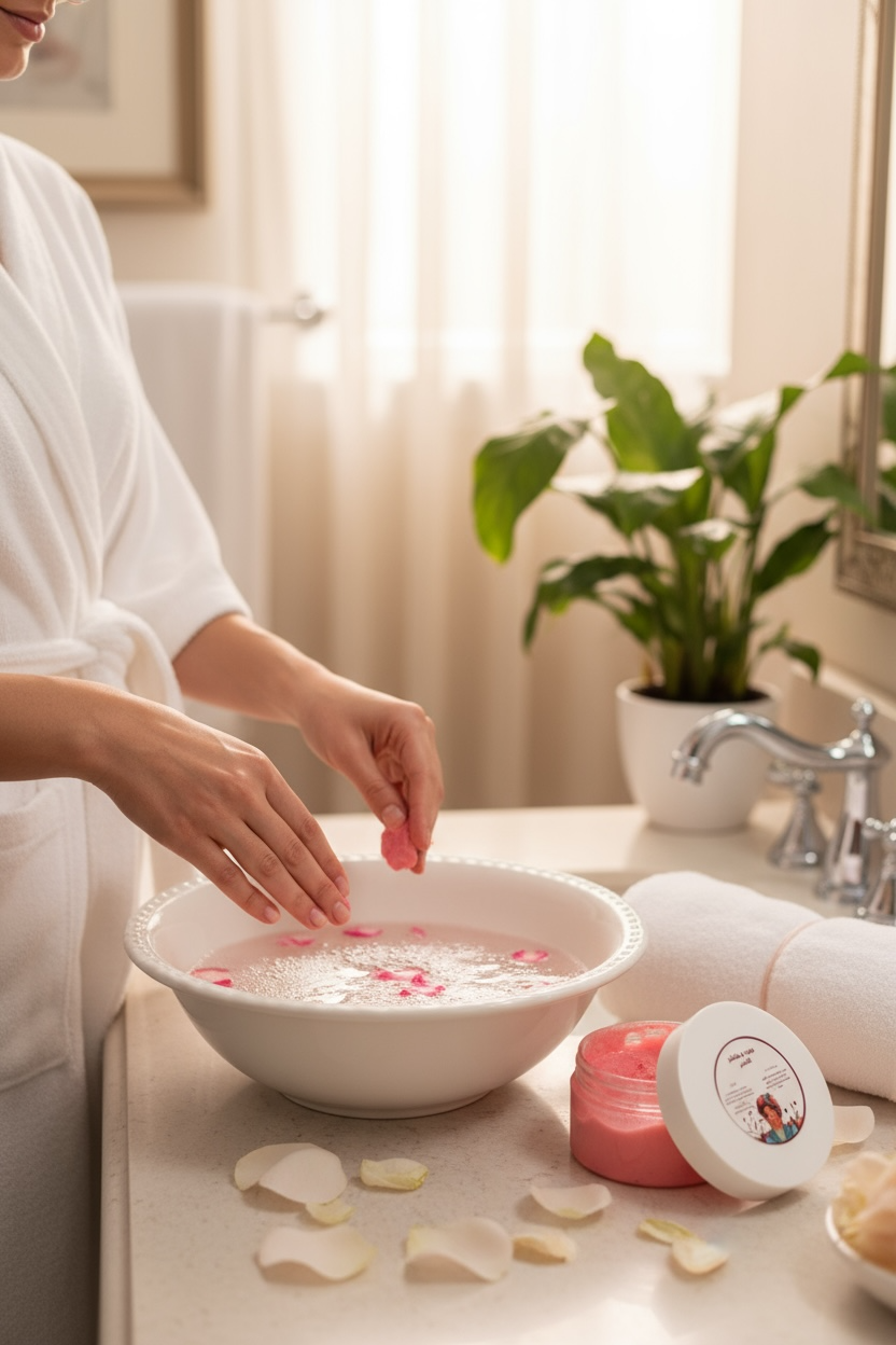 🌸 يساعد على تنعيم الجلد القاسي والكعبين.