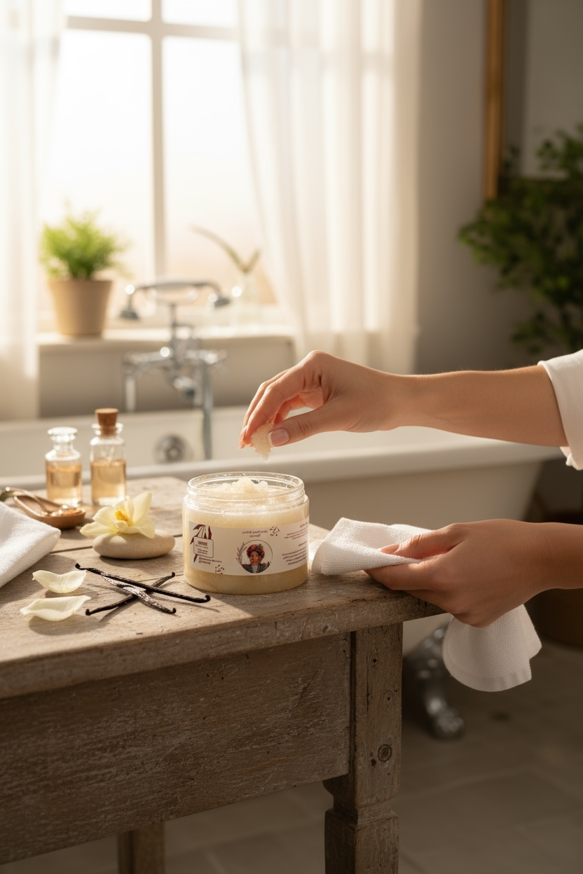 ضعي كمية مناسبة على بشرة رطبة.